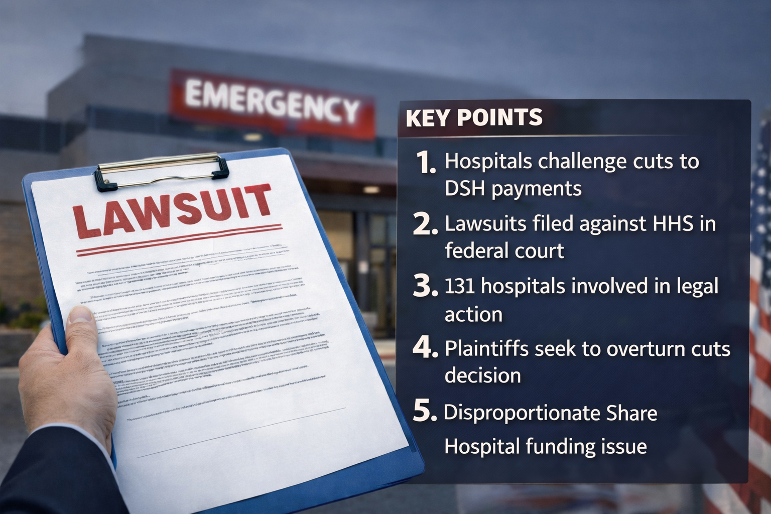 Source: Becker’s Hospital Review Alan Condon, 131 hospitals sue HHS over DSH cuts: 5 notes (March 2026).